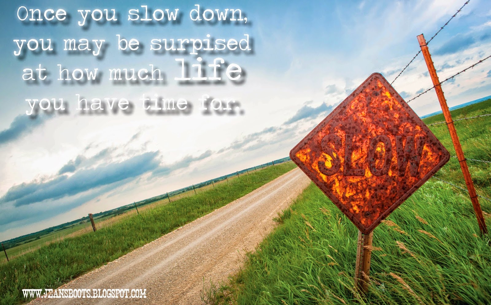 Slow down; look in the mirror and not notice the circles; thank God for another day to do things right.